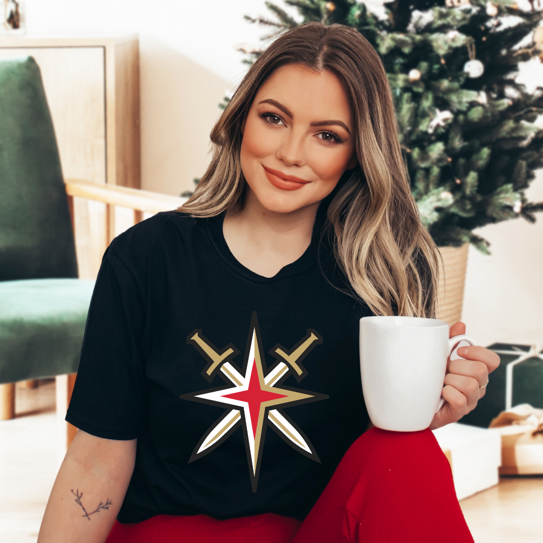 Heat Vinyl is added on this buttery soft t-shirt to create this cute design.